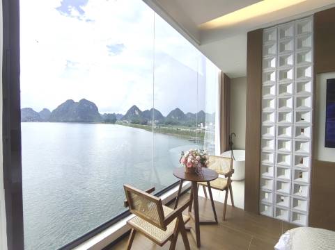 民宿很新很干净,自驾有车位,行李服务员会帮你提到房间。景观房看湖全无敌。装修风格很喜欢。打卡喝下午茶的人也陆绎不绝。离岜旗亭观景台十分钟车程,游船码头就在民宿门口,很方便。