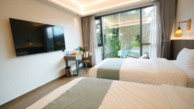 赶在台风来临前来了,下雨日出都赶上了。总结:房间卫生干净,床可以拼起来变成一张大床😁,晚上睡觉很舒服。餐厅也挺好,那个香锅很香,路过的时候就闻到了香味,搞了一个小份的**鸭,差点香迷糊了。前台服务也很好,有求必应。森林浴活动很好,拥抱自然,空气很清新,治愈喔。森林浴结束了坐在湖边,喝着咖啡,看云舒云展,很惬意,比较适合快节奏高压高强度工作的来释缓一下压力。森林里整体布局和造景很好,很出片,我是随手拍的,另一半是找了旅拍,美美的。以后有机会再来