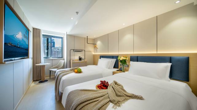 酒店位于中河北路83号茂泰世纪大楼,坐拥城市核心区位,周边商务氛围浓厚、写字楼环绕,交通网络发达,地理位置十分优越。从地铁2号线B1出口出站后直行约2分钟即可抵达,轻松衔接全城各处。周边热门地标及实用场所距离如下: 【文化景点】 西湖风景名胜区:世界文化遗产,湖光山色尽收眼底; 河坊街历史文化街区:体验南宋古韵与地道杭州小吃;西溪国家湿地公园:城市绿肺,自然与休闲完美结合; 吴山广场/城隍阁:登高览胜,感受市井文化与城市夜景。 【商圈夜市】湖滨银泰in77:潮流时尚聚集地,集购物、餐饮、娱乐于一体;武林银泰百货:老牌高端百货,品牌齐全购物便捷;武林夜市:夜间经济地标,手作小物、特色小吃、文创产品琳琅满目;吴山夜市:老牌夜市代表,充满烟火气的杭城夜生活体验;嘉里中心:高端购物与餐饮选择丰富;杭州大厦:品牌云集,购物环境优雅。 【教育健康】浙江大学医学院附属第1医院:综合三甲,资源雄厚;杭州市第1人民医院:地处湖滨,科室齐全;浙江省儿童医院:专业儿童诊疗,家长信赖;杭州第二中学(凤起校区):省重点中学,人文氛围浓郁;杭州第十四中学:历史悠久,办学水平优秀;浙江工业大学(朝晖校区):理工强校,学术氛围浓厚;杭州长江实验小学:优质教育资源,周边生活便利。 【交通枢纽】杭州城站火车站:地铁3站直达,出行便捷;萧山国际机场:机场快速线、地铁均可达,往返无忧。 【其他地标】 浙江省人民大会堂:政治文化中心,建筑庄重大气;京杭大运河(武林门码头):可乘坐水上巴士,体验运河风情;环城北路体育场:市民健身运动热门场所。 无论是商务差旅、家庭出游、就医陪诊、亲子就学,或是探索杭城美食、夜市与夜景,本店均为您提供舒适、便捷的理想住宿选择。