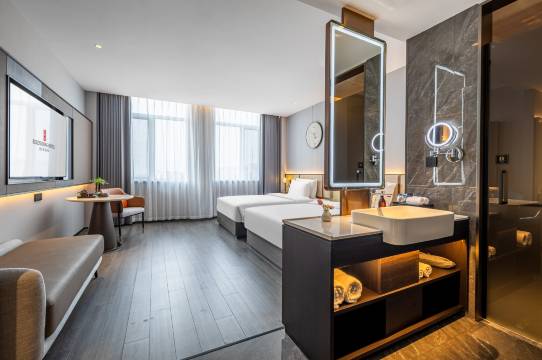 酒店环境很好,交通便利,停车方便,服务好,性价比高。房间智能设施,干净卫生,床品很舒服,早点也不错,虾酱挺好吃的。