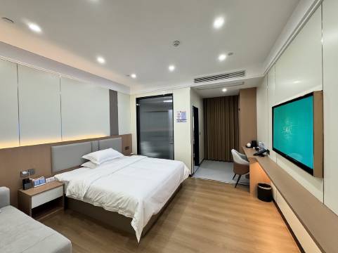 酒店设计雅致清新,房间宽敞明亮,设施完善智能,有高速Wi-Fi、高清电视,床上用品柔软舒适,隔音效果很好工作人员热情,还有贴心的早餐哦,早餐品种丰富,性价比极高。,值得推荐!
