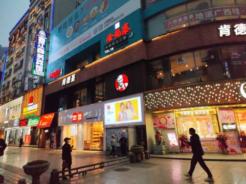 在步行街里,但是比想象中要安静。楼下吃喝玩乐很方便。