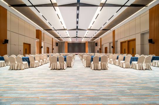 牟山前国际酒店位于厚疆集团总部港项目园区,该园区共6栋建筑,其中3号楼为酒店。酒店地下二层、地上十二层,其中一层、二层为公共区域,三层到十二层为客房层,地上建筑面积约20000平米。酒店共有180间客房,包括双床房、大床房、亲子房、套房等房型;公共设施包括大堂吧、全日制餐厅、中餐包房、茶室、健身房、会议室、客用洗衣房等功能。全部客房配有80寸智能电视,千兆光纤wifi全覆盖,全屋智能小度语音控制,电动窗帘,全景落地天窗;全日制餐厅可同时容纳200人,自助早餐种类丰富,共72款品类,不限量供应,配有中式餐包间6间,其中豪华包间还配有20人旋转桌台不限量供应;酒店会议室可满足各类商务会议活动需求。在规模配置上,结合地域文化特色规划9个会议室,总使用面积约2100平米,可承接1720人规模;布局灵活多变,能实现 “圆桌式”、“剧院式”、“课桌式” 等多种形式,适配商务洽谈、公司培训、产品发布、企业年会、行业论坛等不同应用场景。在核心功能方面,酒店围绕“高效开会”打造,实现影音系统全覆盖;同时,会议期间酒店可同步提供后勤茶水、纸笔、定制茶歇等支持,实现“会议+住宿+餐饮”一站式服务,可全方位满足会议全流程需求。 区位优势: 距离郑州高铁东站驾车20分钟 距离郑州新郑国际机场驾车35分钟 距离开封市区驾车20分钟 距离只有河南戏剧幻城驾车8分钟 距离郑州绿博园驾车7分钟 距离郑州方特旅游度假区驾车5分钟 距离郑州海昌海洋公园驾车4分钟 距离郑州建业电影小镇驾车7分钟