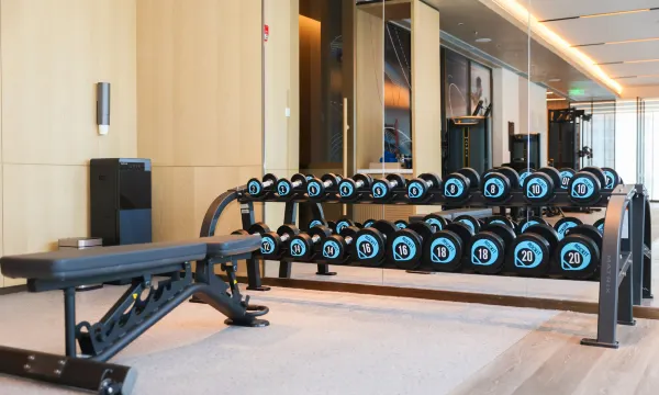 房间内部更是惊喜满满!超大落地窗将环贸天地夜景尽收眼底,床品柔软舒适,卫生间干湿分离设计合理,智能马桶、热带雨林花洒等配置齐全,洗漱用品是小众高级香调,质感绝佳。酒店新配备的健身房器材齐全且崭新,24小时开放超方便,环境整洁。