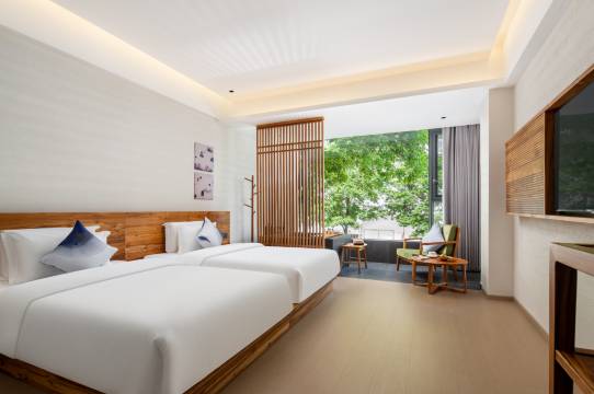 家庭出游超合适!房间宽敞舒适,设施齐全,住得舒心又惬意,前台服务好,性价比超高,阳朔这个季节山水绝美,风景如画。在酒店租台电动车遇龙河骑行太惬意了。下次还会再来~