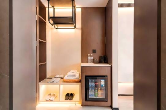 房间设施很不错,前台服务态度也非常得好,非常的有礼貌,房间里有一个小冰箱可以冷藏一下,食物非常的不错,体验十分的满意,81广场也特别的近