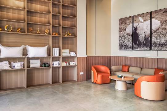 店大厅设计现代舒适,提供了免费的停车场,前台小姐姐热情周到,房间的床品舒适柔软,设施齐全。下次一定还会再来入住。