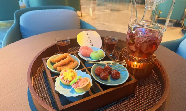 前台服务超级无敌好,给我们还发的附近景点的攻略,酒店的话也有汉服妆造可以体验,种类繁多,晚上也有夜宵可以用