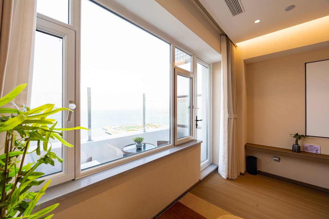 特别好特别好 店家没有要好评我自己来评论了 整个房间都特别出片 窗户在傍晚蓝调时刻还是看日出 白天看晚上看都特别漂亮 外边还有小窗台 位置优越 离威高广场挺近的 好好好好好好好好 外卖也方便可以直接送到房间门口