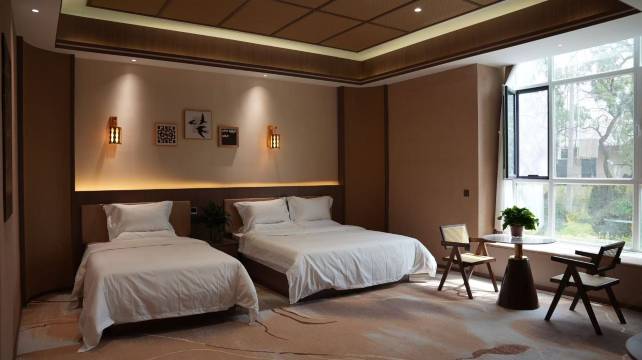 酒店位置绝佳,紧邻太极岛湿地乐园,推窗就是300年树龄的老枣树,清晨被淡淡的枣香唤醒,傍晚能在枣林间散步,空气里满是自然的清新,彻底逃离了城市喧嚣。作为新开业的酒店,设施特别新且齐全,床品柔软舒适,卫生间干湿分离,细节处透着精致。