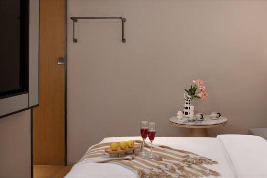 看到酒店有榻榻米的房间,也是近几年比较热门的,而且也是带有语音智能控制的,就想体验一下,没想到在进到房间的时候居然还有投影仪,而且还提供免费的优酷会员,这一点真的太赞了,晚间躺在床上来一部电影大大缓解了一天的疲惫,整个人都很舒服,房间卫生也很干净。