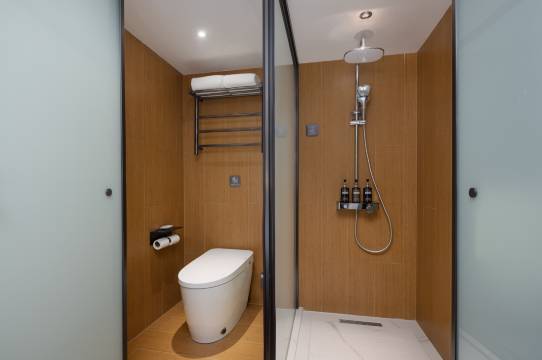 房间很不错,布局干净又宽敞,洗漱用品一应俱全,也很安静,里面是小度语音控制,很智能很方便,酒店出门就是地铁非常方便。酒店还有免费洗衣机烘干机,前台服务态度很不错,碘伏棉签针线包都有,很方便,周边好吃的挺多的,挺不错的一家酒店