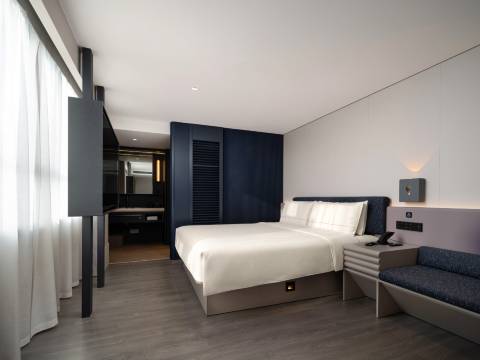 西安钟鼓楼五路口地铁站轻居酒店位于西安城墙内朝阳门里,在钟鼓楼商圈核心地带。酒店为3.3轻居酒店,我们以热那亚蓝色夜晚为灵感基调,融合更年轻、更潮流的设计语言,注入丰富场景化模块,实现配置多维升级。全房型配备智能控制系统,入户感应取电,畅享投屏电视、迷你冰箱、智能马桶等品质设施。酒店背靠西安市人民体育场,周边有民乐园万达广场、民生百货等购物中心,还有众多美食街和历史景点,如革命公园、永兴坊等,商圈繁华,且蕴含丰富的历史文化记忆。
