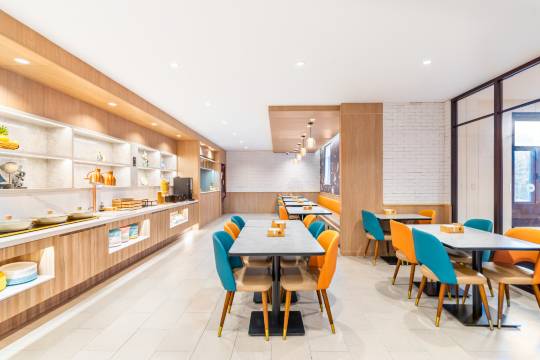 早餐真的很好吃,卫生还干净,服务很热情,跟回到了家一样,最主要离服装城市场很近,走路200米就到了,附近吃饭很方便,机器人送餐很安全,设施很齐全,很满意的一次入住体验,下次有机会还会再来