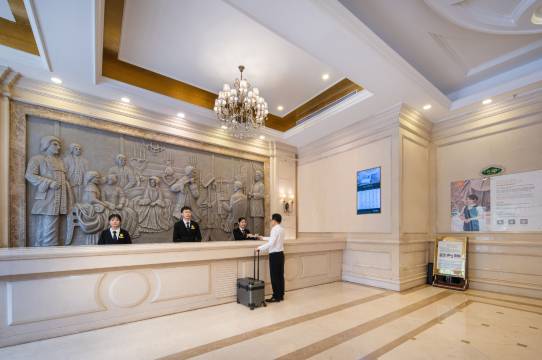 酒店座落于湛江市赤坎区“万达广场内”,集购物、影院、餐饮、娱乐综合一体化。金沙湾观海长廊的黄金海景地段,与海湾大桥相映成辉,毗邻海滨浴场、国际游艇码头、繁华商圈,大型超市触手可及,驾车约20分钟即可轻松抵达湛江西站及火车站,地理位置优越,交通便利。酒店采用欧陆风情设计装修,名师设计打造,富有浓郁的欧式风情,彰显高贵典雅的不俗品味,大堂气势恢弘,金碧辉煌。设计高贵气派,豪华舒适,酒店客房均配高速宽带上网及国际数字电视,大型停车场等配套设施。客房配有独立空调、吹风机、浴室;助眠愉梦之床;速热按摩式沐浴花洒;一应俱全的设施与气派的装修彰显星级酒店的豪华高贵,更体现时尚的生活理念,“绅士般品味,淑女般亲切”,流淌着家般的温馨与舒适,让您流连忘返。陪伴您在繁忙的商务旅途中享受舒适高品质的旅途。湛江维也纳国际酒店全体员工时刻恭候您的莅临!