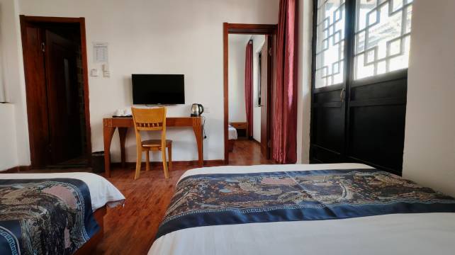 老板特别热情,客房干净整洁,出门就是小河,晚上坐在门口欣赏夜景非常惬意,离步行街也很近,闹中取静,推荐!