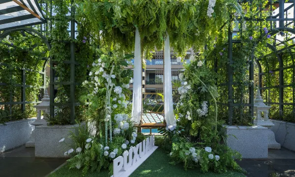 酒店的花园处处都是绿植和打卡点,怎么拍都好看