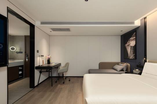 客房布局合理,采光和通风都很好,床品洁净柔软,设施齐全崭新,窗帘、灯光、卫浴等使用起来都很方便,居住舒适度极高。酒店隔音效果很棒,晚上休息特别安静,能睡个安稳觉。