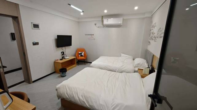 新开的挺干净的,老板人很好,我们4人升级成了双床房,,离高速很近,推荐给自驾出行的