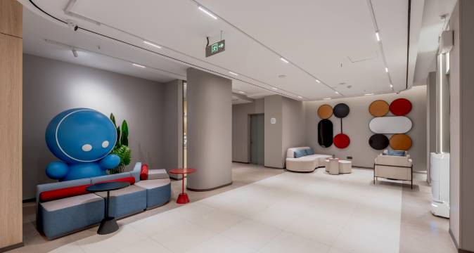 没有带房卡走的安全通道发现一个可以拍照打卡的地方 就在酒店里面可以拍照 房间自带的镜子拍照超级好看灯光超级好看 洗漱台的镜子还带有补光灯对化妆的萌妹子很友好 外卖也是机器人送上楼来的 电视可以投屏也可以听歌哦 推荐住这家!!!!