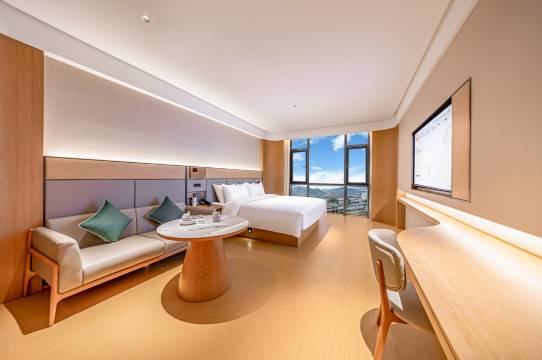 带娃入住体验远超预期!前台看到我们一家四口,主动免费升级了大房型,孩子们有了足够的活动空间,贴心到感动。房间卫生做得特别到位,光脚踩地也没问题,床头柜旁边的开关可以开关灯、拉窗帘,孩子觉得新鲜又好玩。床品舒适,一家老小都睡得很香甜,房间隔音也好,晚上特别安静。早餐种类丰富,能满足孩子的口味,餐后还能去大堂泡杯免费好茶歇脚。周边交通便利,去市区、山区景点很方便,强烈推荐给带娃出行的家庭!