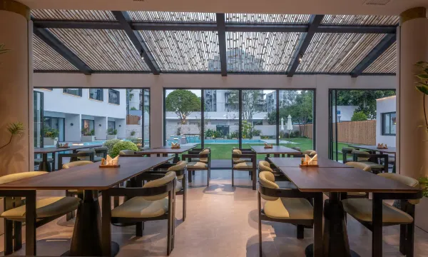 翠隐万嘉荟度假酒店(绍兴鲁迅故里仓桥直街店)拥有多类客房。其中翠隐有隐秘与自然的寓意,万嘉荟多元美好的集合。酒店宋氏美学设计,整体风格汲取宋代极简、典雅、自然的审美,运用木材、绿色、金色、留白等元素,营造宁静致远、文雅精致的氛围。提升入住便捷性和科技感。喜临门零压床垫是注重睡眠体验的体现。卫浴用品、迷你吧等配置也延续高品质标准。全投影房型给客户带来沉浸式入住体验。与酒店美学风格融合的户外泳池。酒店内设有精心打理的中式庭院和开阔草坪,是散步、小憩、举办小型活动的理想场所。酒店靠近鲁迅故里景区,可以非常方便地步行或短途乘车前往鲁迅故里、沈园、仓桥直街等绍兴核心历史文化街区探索游览。入住酒店可以深入体验绍兴的人文风情在充满宋风的庭院中漫步,在草坪上享受午后阳光,傍晚在智能客房中用投影看一部电影,通过智能客控轻松调节室内环境,给您带来不错的度假体验。