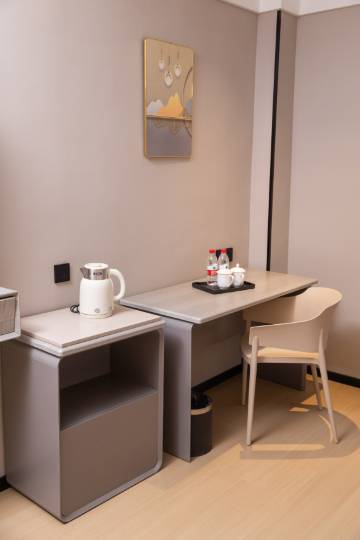 设施方面也很完善,舒适的大床、高清大屏电视、便捷的智能控制系统,每一项都很实用。书桌区域宽敞舒适,不管是办公还是休闲都很合适,桌上的饮水设施和茶具一应俱全,非常贴心。窗帘的遮光效果特别好,对于喜欢睡懒觉的人来说太重要了。