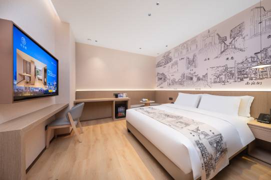 福州璞渼樾酒店地处福州台江区文化氛围浓厚的世欧王庄广场边上,周边生活便利,交通便捷。酒店设计融合了现代轻奢与人文气息,致力于为旅客提供舒适且兼具品质的住宿体验,是您探索福州老城韵味、品味市井美食的理想下榻之所; 【酒店设计与文化特色】酒店客房内采用了 “三坊七巷”水墨画作为床头背景。三坊七巷是福州的历史文化名片,拥有深厚的文化底蕴,这样的设计元素,将福州特有的古街巷韵味带入室内空间,希望能让您在休憩时,也能感受到这座城市厚重的历史感和独特的文化气息,营造出宁静雅致的居停氛围。 【酒店配套设施设备】酒店床上用品星级同款四件套、鸭绒被芯、鸭绒枕芯、星级酒店同款毛巾浴巾,“慕思”床垫品牌、某品牌同款深睡PRO记忆枕、“徕芬SE2”吹风机、电子静音MINI冰箱、智能马桶、智能客控(一声“小度”即可控制客房窗帘)、空调开关、空调温度、电视开关灯,洗护用品均使用源自法国罗斯琳(ROSSLYN)品牌--红山茶花系列套装以及高品质洗漱用品等; 【周边美食寻味】周边可谓是“藏龙卧虎”,聚集了许多口碑载道的老店和人气小吃,能够让你尽情体验“有福之州”的饮食文化; 【周边景点游玩】酒店周边不仅美食云集,文化历史和休闲景观资源也相当丰富,步行或短途骑行即可抵达多个值得一游的景点,(上下杭历史文化街区)--小桥流水,明清至民国建筑,商业航运史;(三坊七巷)--明清古建筑博物馆,近代史名人故居,(烟台山历史风貌区)--昔日使领馆区,西洋建筑,文艺街巷;(闽江之心,青年会、青年广场)--百年古厝,红砖建筑,魅力天桥;闽江轮渡夜游---被璀璨灯火点亮,乘船游江是体验这座城市现代文化与历史文化交融的方式; 【自然生态休闲】福州西湖公园,古典园林,柳堤春晓,城市绿肺,福道钢架镂空森林步道,金牛山段,夜景迷人; 【周边购物休闲】世欧王庄广场是大型综合购物中心,集购物、餐饮、娱乐于一体,适合一站式休闲消费。 【交通便利】步行几分钟即可到地铁2号线--紫阳地铁站,如乘坐地铁2号线可直达南门兜地铁站站(三坊七巷)、通过南门兜地铁站乘换地铁1号线也可直达福州火车站,步行即可到达F1滨海快线--闽都地铁站。