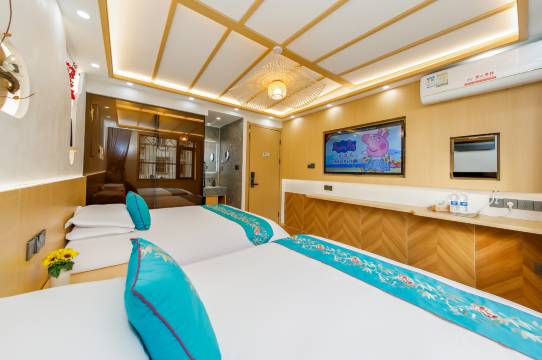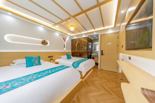 老板特别热情,订房以后老板主动联系加微信,提前把游玩注意事项和下船如何乘坐巴士这些说明发给我们,下巴士老板已经等在车站帮我们拿行李带我们去住宿地,到达目的地很贴心的为我们安排相邻房间,有差价也主动退回;老板还还增送我们旅游地图贴心帮我们规划游玩路线讲解各类拜佛注意事项;还赠送我们好几样纪念物品,我们都非常喜欢;第二天我们出去游玩贴心帮我们把行李送到码头寄存,我们玩完直接去到码头取行李上船真的特别方便。超级推荐,下次再来还要入住这家