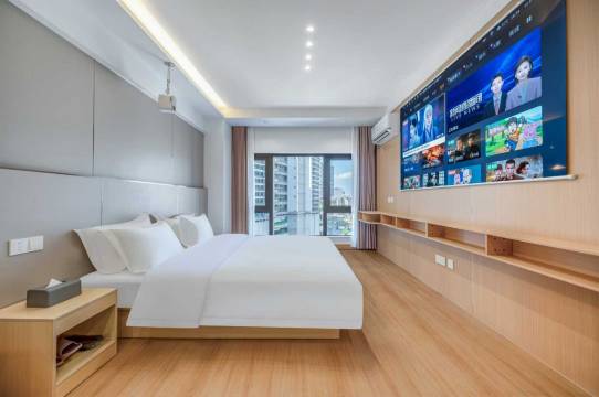 这家民宿地理位置超棒,离龙湖天街很近,出行很方便。投影的质感很好,高清大屏幕。床很舒服和干净,入住在这家民宿我睡的很舒服和踏实,房间隔音很好很安静。是新开业,价格不贵,比酒店好多了,比较推荐的。