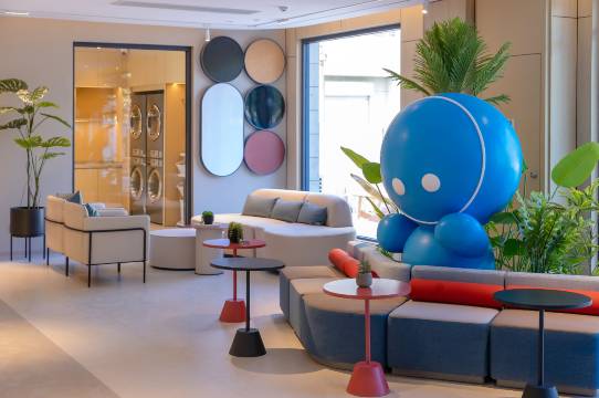 新开业的酒店,环境很新很干净,工作人员态度非常好;另外有洗衣房,洗衣机和烘干机也很好用