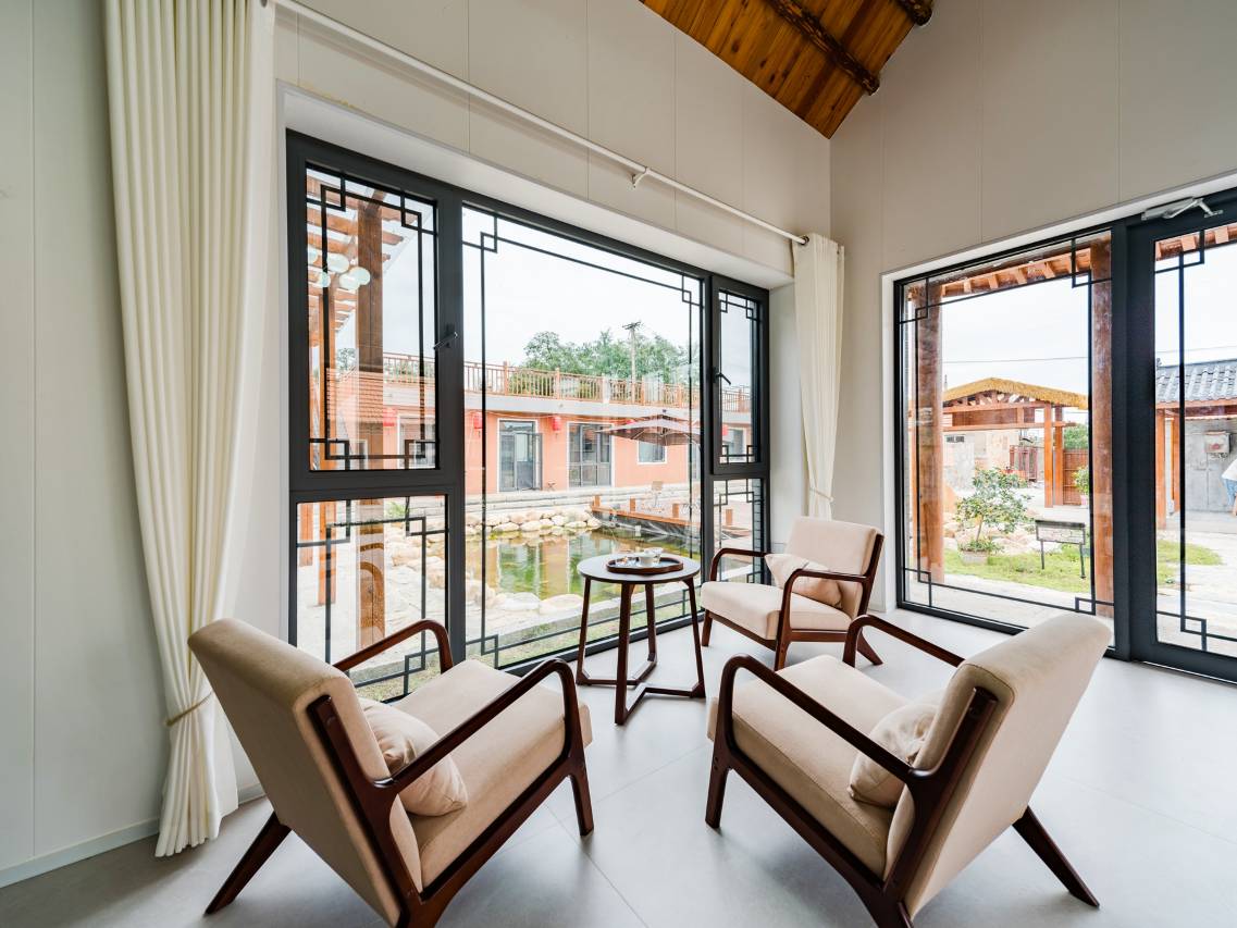 民宿位置远离城市的喧嚣,坐落在乡村田野中,整体四合院式的设计风格,院内小桥流水,休闲设施完善,非常舒适。房间干净卫生无异味,设施非常新。老板大姐为人热情,服务周到,是个宝藏店铺。希望越做越好,还会再光顾。
