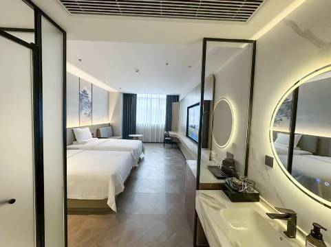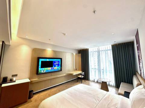 发现了一家宝藏酒店,酒店的地理位置优越,装饰现代化简约大气,跟朋友一起出来玩。在平台上看的是甄选大床房,本来没有什么特别大的期待,但是来到酒店真的是有惊喜的哇~首先酒店大厅整个装饰非常有调性,沙发区的休闲沙发非常棒,舒适度感觉可以立即躺平了,前台小姐姐很漂亮,服务很好,一边帮我们办入住一边给我们讲解附近的游玩攻略,帮我们时间安排的很合理,房间帮我们安排在7楼,房间虽然是内窗房,但是不影响入住,房间有换气,也有空调送风模式,主要是房间有淡淡的香味,整个看起来舒适度极高,特别适合值得推荐给身边的朋友们,最主要的是性价比超高