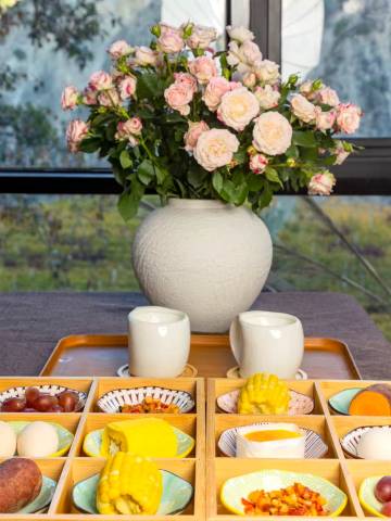 这次香格里拉之行,我们全家都觉得,最大的收获就是选对了酒店!其实同价位的酒店,装修都挺好的,但是也很雷同!茸洽山居整体的感觉是不同的,所有的内部空间都用帐篷布进行了包裹,让人感觉很暖很温馨,这点在高原上特别重要,配合只有2200米的海拔,真的很友好!由于天气的原因没有看到日照金山,但是塞翁失马,焉知非福,我们全家决定换个季节,再来一次!希望看到整个村庄都是葡萄硕果累累的样子!