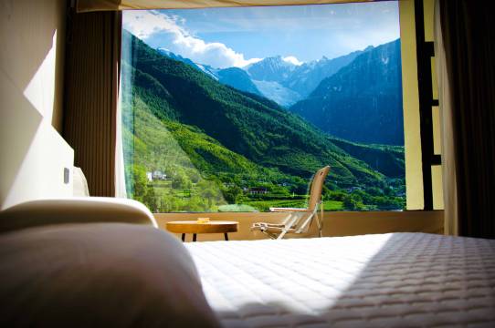 为了神圣的梅里雪山和明永冰川而来。能在村里住到这么舒适有氛围的酒店,还挺惊喜的!酒店房间看的出还是很有巧思的,窗明几净正对卡瓦博格,躺在床上就能看见日照金山,体验真的太棒了!谁能拒绝一边吃早餐一边欣赏梅里雪山呢!