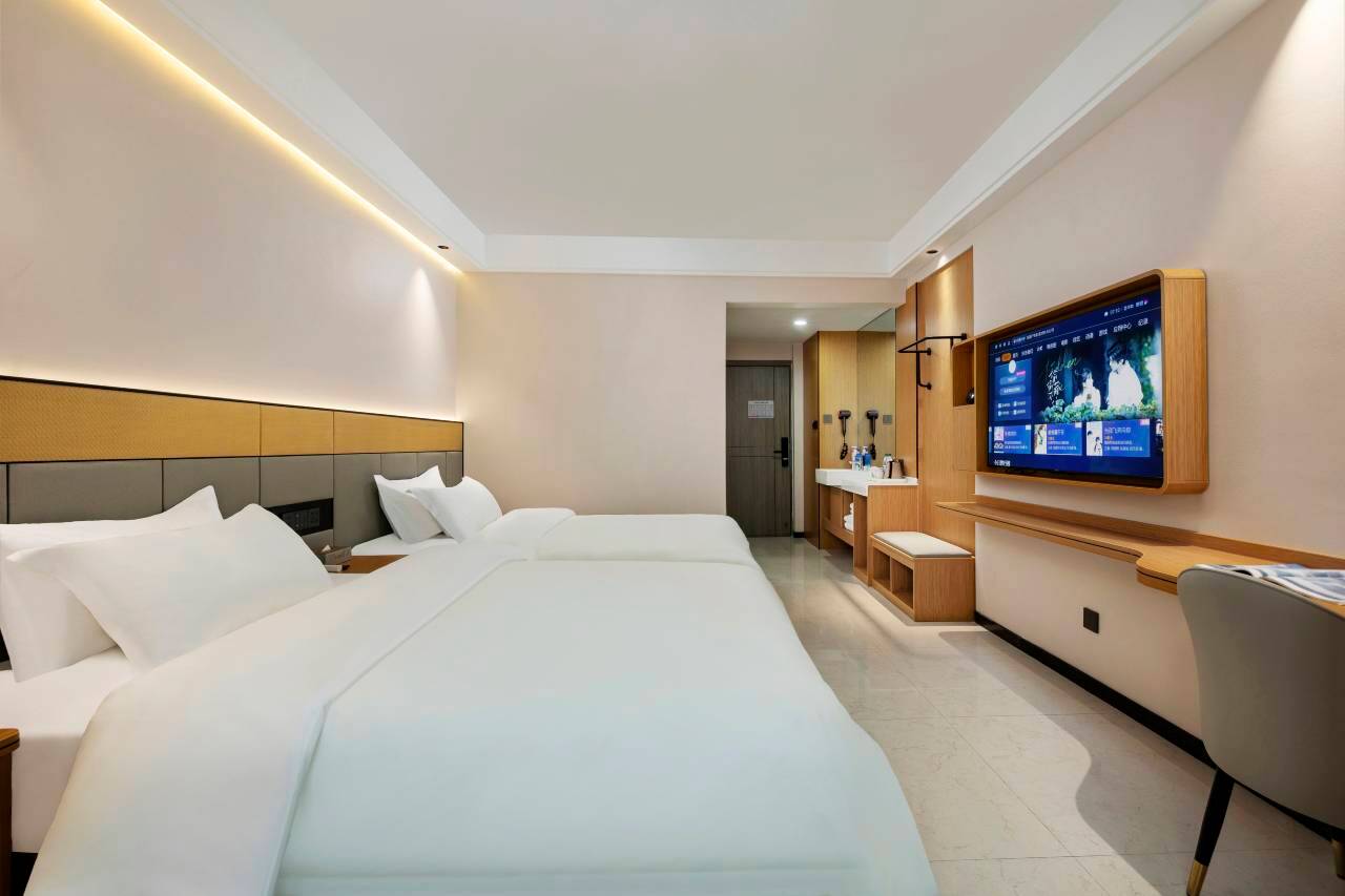 房间很干净整洁!设施设备齐全舒适,房间也很宽敞,前台态度也很温柔体贴,酒店性价比很高!住起来真的很舒服,干净让人的很安心!下次还来!!!