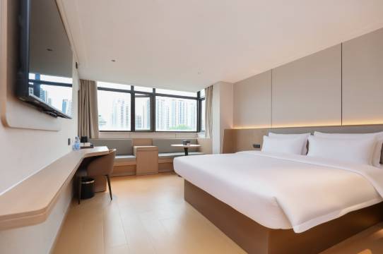 地段很好交通便利,酒店环境简约大气,房间安静隔音佳,前台态度温和,早餐丰富多样,住得特别舒心。