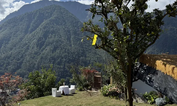 房间内非常干净,院子里环境好,空气好。 老板非常用心的在经营,人也很好,细节布置得也非常好。服务也非常的不错。提供的餐都很好吃,用的都是真才实料。设施很好,用的东西非常精致。 床品和卫浴用品也都非常好,马桶用tutu,吹风筒用戴森。如果天气好早上可以看到金山,下午可以看到雪山。简单的一句话来形容就是: “一个5星品质的民宿”。