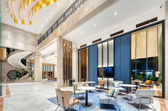 舟山福朋喜来登酒店坐落于浙江省舟山市定海区,地处定海核心商圈,周边生活配套醇熟,超市、餐饮、精品店、银行等设施环绕,满足宾客日常所需。从酒店出发,可便捷抵达定海古城、鸦片战争遗址公园等知名景点,步行即可畅享城市烟火气;驱车前往舟山普陀山机场、舟山港客运站亦十分顺畅,无论是商务出行还是旅游度假,都能轻松开启行程。酒店以现代简约风格打造,尽显雅致格调,属当地高品质豪华酒店。客房布置温馨舒适,均选用知名品牌床垫与高支棉床品,搭配柔和灯光与人性化设施,为宾客营造一夜好眠的休憩环境;客房内客用品皆按高规格配置,从洗漱套装到细节摆件,处处彰显尊贵入住体验。此外,酒店设有特色餐厅,精选舟山本地新鲜海产与时令食材,匠心烹制地道海鲜美味与融合菜系,无论是家庭聚餐还是商务宴请,都能让宾客在味蕾间感受舟山的海洋风情,细节之处尽显品牌对品质的严苛追求。