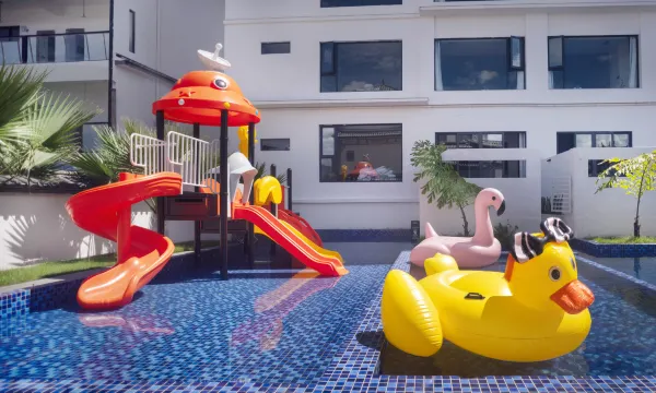 酒店设施比较新,放松休息非常舒服,这次带孩子来的,不玩水的时候可以把孩子丢到乐高和玩具区域,自己好好享受下午茶,泳池水温对孩子来说非常友好,房间里的物品提供也处处体现了细节,非常贴心,步行可到达集市,巨方便。已经推荐给好姐妹,下次约着再来遛娃。