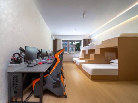 电竞氛围超足,设备很新很专业,网速流畅,吃鸡LOL毫无压力。房间整洁舒适,隔音效果不错,休息也很安心。前台态度友好,性价比在线,是本地值得一住的电竞酒店
