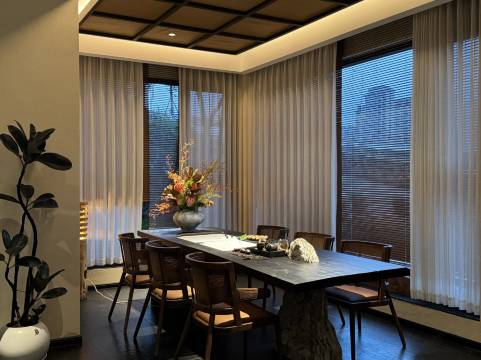 环境: 房间层高很高,宽敞明亮,还有单独的休闲卡座,可以在窗边喝茶品茗,侘寂风的装修,一走进房间就感觉非常治愈。