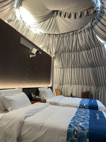 先生在这里拍摄星轨,下午有温泉♨泡,房间干净卫生整洁,服务热情周到,房间暖和。早餐可以满足需求,这么小的地方,不要强求。离湿地公园很近。