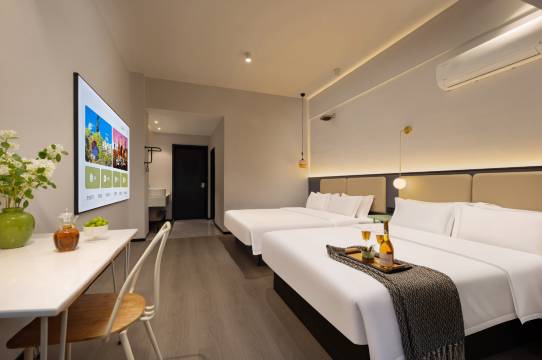 大爱高楼层落地窗,白天看风景晚上看夜景超治愈。房间干净卫生,空间宽敞,设施新又全,环境安静舒适,整体体验很棒,出行住宿首选!