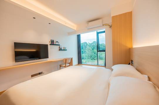竹里全景酒店,环境清净,让您拥有舒适睡眠。私密性强,保障您的个人空间。所有客房均为全景落地窗,采光通风好,推窗可见景。免费接送、免费下午茶、高档品质、免费停车。