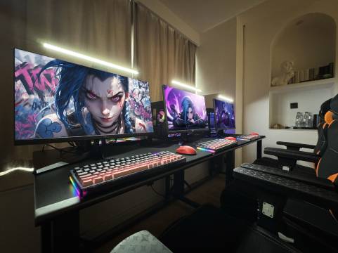 打游戏一般喜欢找电竞酒店安静些。在蚌埠找高配房型翻到了这家。到了之后是家新店。配置真的高,因为玩pubg没定9800x3d定了这间房7800x3d 5070的卡,狗二加飓风三。华硕的卡确实没问题,不像有些地方用杂牌卡 实际玩还会掉帧。环境也不错,卫生干净,隔音效果好。立银泰万达都很近,下次来就试试高配卓威房间。老板人很好,据说要上磁轴键盘。