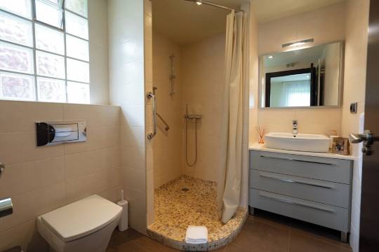 Villa in the mountains in front of a lake.