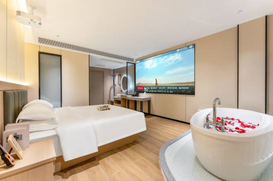 本店与观澜地铁站,举步即达;浓厚历史人文触手可及,楼下美食街与商业街热闹非凡,满足您吃喝玩乐购的所有需求。酒店客房主打现代简约风,利落的线条勾勒出开阔空间,摒弃繁杂装饰,以清爽配色营造宁静氛围。每间房都单独配有万兆独立wifi、独立滚筒洗衣机和冰箱。不管您是商务出行还是休闲度假,都能在此享受便捷与舒适。