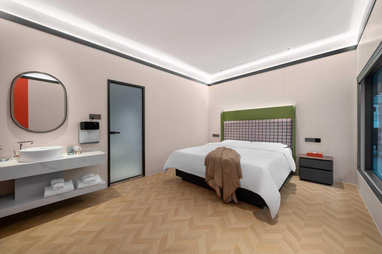 房间不错,是我喜欢的装修风格呢,一进大堂就觉得很大气的。房间的布局不错,还有机器人很可爱说话很有趣,卫生打扫的也很干净彻底,细节卫生做的不错呢,前台小姐姐们服务很不错。很热情 整体的感觉给人很不错,设施设备也很齐全健身房和洗衣房都有 洗衣机也是带有烘干的功能 可以,性价比挺高的