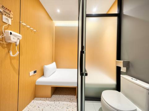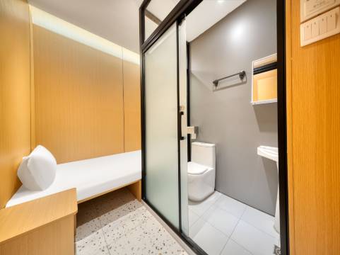 本来担心迷你房型会局促,结果体验感满分!木质墙面温馨又显整洁,床品是刚换的干净度,卫生间的置物架和洗漱台设计得特别实用,连“厕纸入篓”的提示都很贴心。住下来感觉像个小而美的独居公寓,出差住这儿既舒服又高效,必须安利!